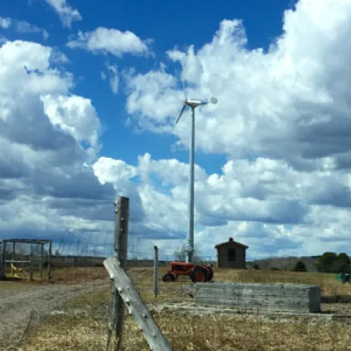 Resulting from collaboration among students, faculty, and staff from the biology, sustainability, engineering, and geography departments, this innovative turbine was designed in spring 2014 and constructed in the fall when a tower became available. The foundation was poured in October 2014 and the tower was installed in March 2015. This project enables further research and learning opportunities and generates renewable energy.
